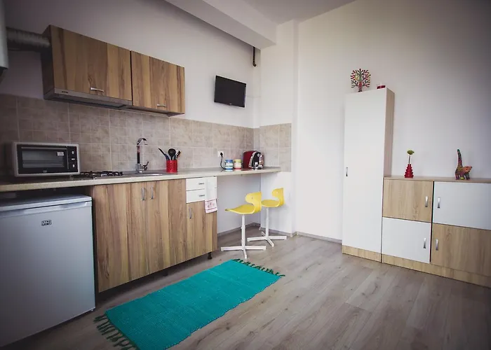 A szálláshely olyan önellátó felszerelésekkel rendelkezik, mint a mikrohullámú sütő, hűtő és konyhai edények, így a vendégek saját maguk készíthetik el ételeiket. A Cofetaria Aroma étkezési lehetőség egy 6 perces gyalogútra található. A Mihail Kogalniceanu nemzetkozi repülőtér elérhető egy 28 perces autóúttal.